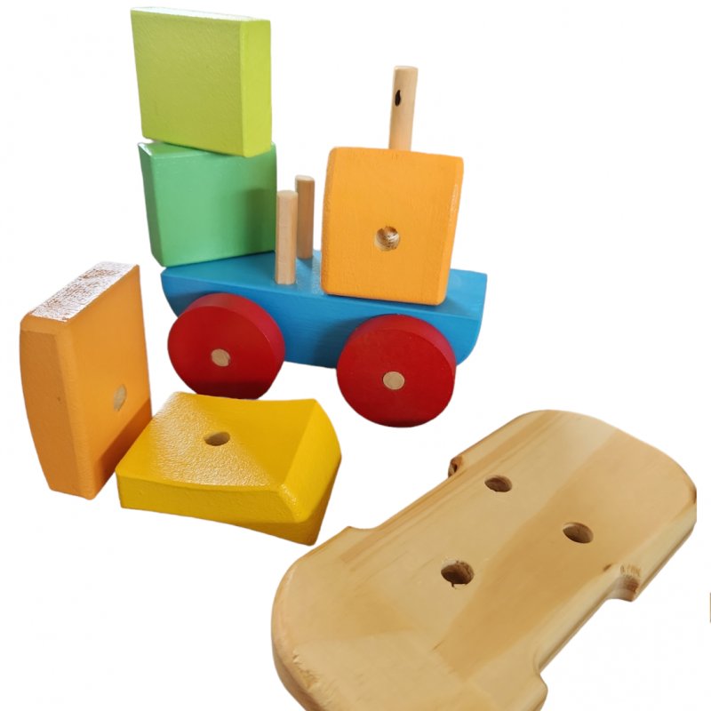 Rodado didactico de bloques desarmable, juego de ensarte, rompecabezas y arrastre.